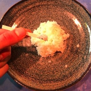 Sushi rice must be acidified using acetic acid (vinegar) to be classified as non-hazardous.